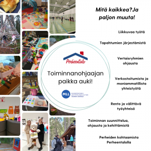 Perheentalo yhteistyö/Mannerheimin Lastensuojeluliiton Iisalmen yhdistys ry hakee toiminnanohjaajaa. Tule mukaan kehittävään varhaisen tuen työtiimiin lasten ja perheiden pariin!