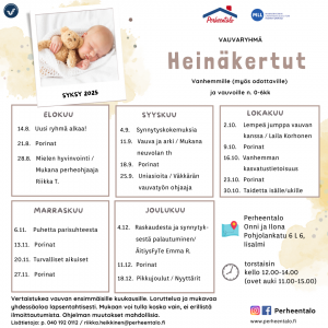 Uusi Vauvaryhmä Heinäkertut, 0-6kk vauvoille ja heidän vanhemmilleen. Voit tulla mukaan jo odotusaikana!