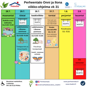 Perheentalon ohjaaja on aina paikalla, mutta ohjattua toimintaa ei ole.