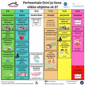 Perheentalo poikkeuksellisesti suljettu klo 9-14 työntekijöiden suunnittelupäivän vuoksi.