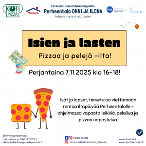 Isänpäivä lähestyy, niin myös meidän mahtava Isien ja lasten pizzaa ja pelejä -ilta perjantaina 7.11. klo 16-18!