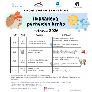 Seikkailevaan perheiden kerhoon voit tulla mukaan koska vain, ei tarvitse ilmoittautua.
