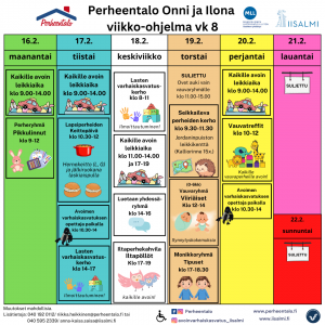 Kaikille perheille avoin Iltaperhekahvila Iltapöllöt klo 17–19. Vapaata leikkiä ja askartelua.