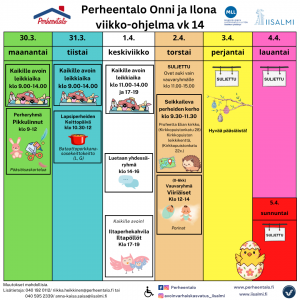Perheryhmä Pikkulinnut klo 9–12. Perheryhmään ovat tervetulleita kaikki alle kouluikäisten lasten perheet. Vapaata yhdessäoloa ja leikkiä. Ohjattua toimintaa perheiden toiveiden mukaan. Yhteistyössä Iisalmen seurakunnan kanssa.